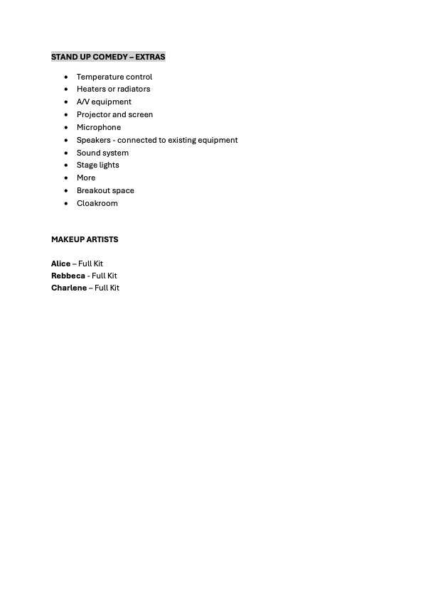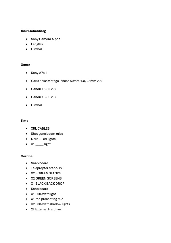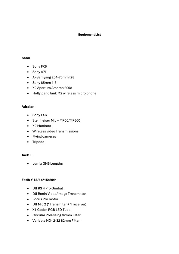 Equipment List